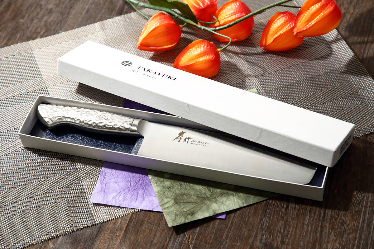 カステラ包丁や豆腐切りなど特殊包丁を除いて、家庭用、業務用の区別はありません。業務用は比較的長いものを使います。これは切る食材と分量によりきまります。当然まな板も大きいものを使います。家庭でも良い包丁をぜひお使い下さい。