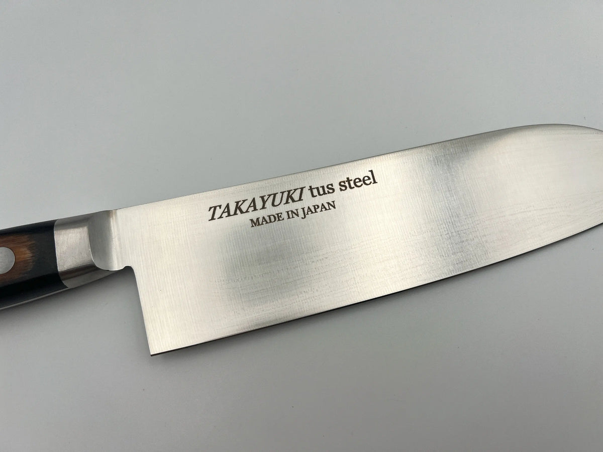 堺孝行TUS包丁はツバ付きの本格的包丁です。価格的にもかなりお値打ちな設定です。柄も落ち着いた木目調で重厚感があります。ご家庭のキッチンにも高級感がます包丁です。本格包丁の入門編としても最適です。